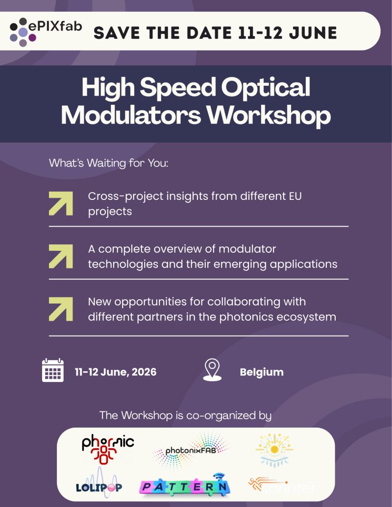 The SPRINTER Project will participate in the upcoming ePIXfab cross-fertilization workshop on high-speed optical modulators, taking place 11–12 June 2026 in Belgium.